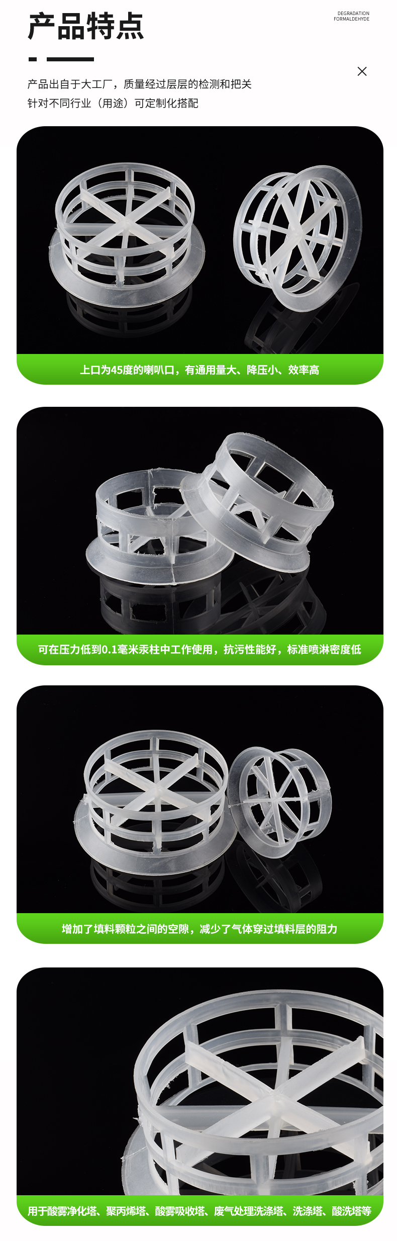 名稱 | 規格 | 直徑x高度x壁厚 | 比表面積 | 空隙率 | 堆重 | 堆積個數 | 干填料因子 |