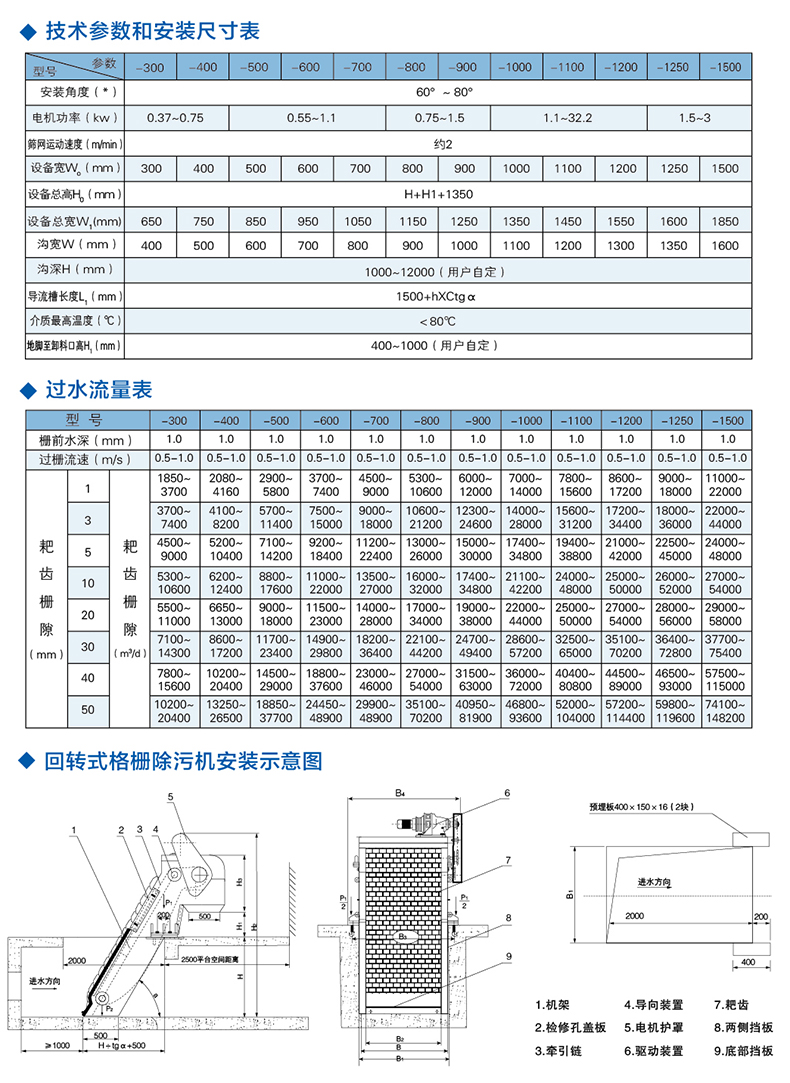 機(jī)械格柵是給水排水處理技術(shù)中早期產(chǎn)生的凈化設(shè)備之一。 它大大地減輕了工人的勞動強(qiáng)度,保護(hù)工人身體健康 , 降低進(jìn)水的水頭損失,提高泵站效率。