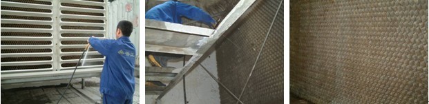 高壓噴槍進行最終清洗               清洗后填料照片                             清洗涼水塔底部